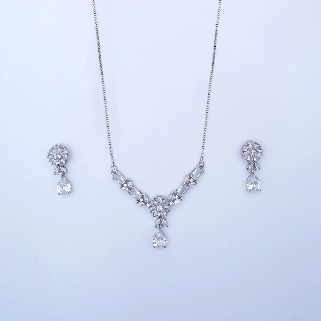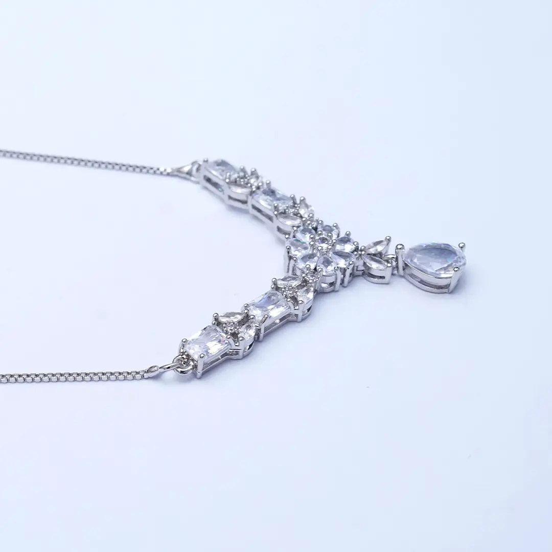 The necklace is perfectly paired with matching drop earrings, making it an ideal jewelry set for weddings, formal events, and special celebrations.